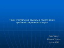 Тема Глобальные социально-политические проблемы современного мира Подготовила Шперова