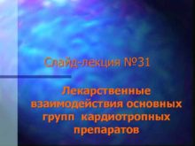 Слайд-лекция 31 Лекарственные взаимодействия основных групп кардиотропных