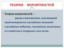 ТЕОРИЯ ВЕРОЯТНОСТЕЙ Теория вероятностей раздел математики изучающий