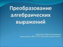 Преобразование алгебраических выражений Николенко Денис Владимирович преподаватель ОБОУ