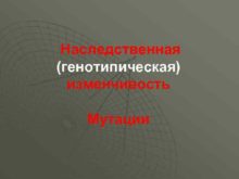 Наследственная генотипическая изменчивость Мутации Генотипическая изменчивость