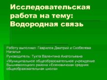 Исследовательская работа на тему Водородная связь Работу выполнил