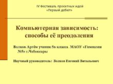 IV Фестиваль проектных идей Первый дебют Компьютерная зависимость
