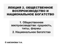ЛЕКЦИЯ 2 ОБЩЕСТВЕННОЕ ВОСПРОИЗВОДСТВО И НАЦИОНАЛЬНОЕ БОГАТСТВО 1