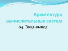 Архитектура вычислительных систем 04 Ввод-вывод Ввод-вывод Устройства