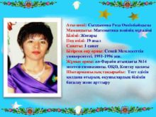 Аты-жөні Сыздыкова Роза Өксікбайқызы Мамандығы Математика пәнінің мұғалімі