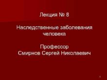 Лекция 8 Наследственные заболевания человека Профессор Смирнов