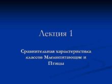 Лекция 1 Сравнительная характеристика классов Млекопитающие и Птицы