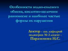 Особенности водно-солевого обмена кислотно-щелочное равновесие и наиболее частые