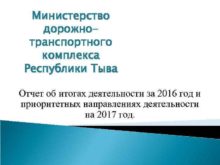 Министерство дорожнотранспортного комплекса Республики Тыва Отчет об итогах
