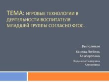 ТЕМА ИГРОВЫЕ ТЕХНОЛОГИИ В ДЕЯТЕЛЬНОСТИ ВОСПИТАТЕЛЯ МЛАДШЕЙ ГРУППЫ