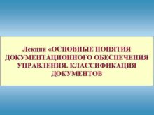 Лекция ОСНОВНЫЕ ПОНЯТИЯ ДОКУМЕНТАЦИОННОГО ОБЕСПЕЧЕНИЯ УПРАВЛЕНИЯ КЛАССИФИКАЦИЯ ДОКУМЕНТОВ