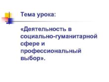 Тема урока Деятельность в социально-гуманитарной сфере и профессиональный