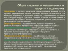 Общие сведения о направлениях и профилях подготовки Образование