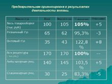 Предварительная ориентировка в результатах деятельности аптеки Показатель План