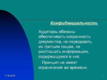 Конфиденциальность Аудиторы обязаны обеспечивать сохранность документов не передавать
