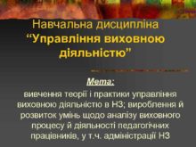 Навчальна дисципліна Управління виховною діяльністю Мета вивчення теорії