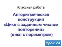 Классная работа Алгоритмическая конструкция Цикл с заданным числом
