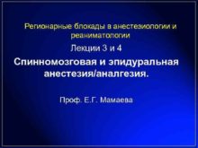 Регионарные блокады в анестезиологии и реаниматологии Лекции 3