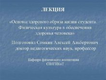 ЛЕКЦИЯ Основы здорового образа жизни студента Физическая культура