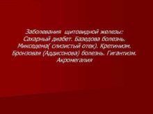 Заболевания щитовидной железы Сахарный диабет Базедова болезнь Микседема