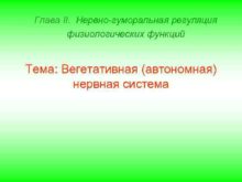 Глава II Нервно-гуморальная регуляция физиологических функций Тема Вегетативная