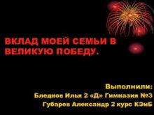 ВКЛАД МОЕЙ СЕМЬИ В ВЕЛИКУЮ ПОБЕДУ Выполнили Бледнов