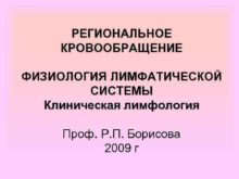РЕГИОНАЛЬНОЕ КРОВООБРАЩЕНИЕ ФИЗИОЛОГИЯ ЛИМФАТИЧЕСКОЙ СИСТЕМЫ Клиническая лимфология Проф