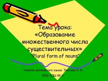 Тема урока Образование множественного числа существительных Plural form