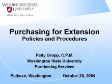 Purchasing for Extension Policies and Procedures Patty Gropp