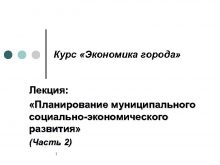Курс Экономика города Лекция Планирование муниципального социально-экономического развития