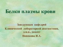 Белки плазмы крови Заведующая кафедрой Клинической лабораторной диагностики