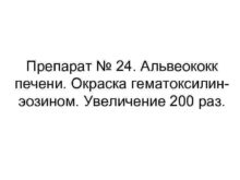 Препарат 24 Альвеококк печени Окраска гематоксилинэозином Увеличение