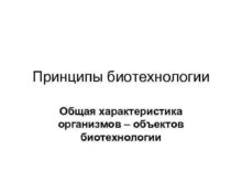 Принципы биотехнологии Общая характеристика организмов объектов биотехнологии