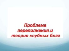 Проблема переполнения и теория клубных благ Полезность совместно