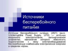Источники бесперебойного питания Исто чник бесперебо йного пита