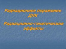 Радиационное поражение ДНК Радиационно-генетические эффекты Радиопоражаемость А