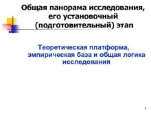 Общая панорама исследования его установочный подготовительный этап Теоретическая