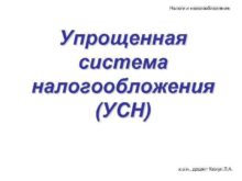 Налоги и налогообложение Упрощенная система налогообложения УСН к