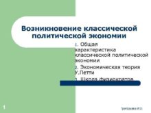Возникновение классической политической экономии Общая характеристика классической политической