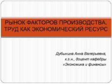 РЫНОК ФАКТОРОВ ПРОИЗВОДСТВА ТРУД КАК ЭКОНОМИЧЕСКИЙ РЕСУРС Дубынина