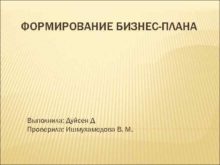 ФОРМИРОВАНИЕ БИЗНЕС-ПЛАНА Выполнила Дуйсен Д Проверила Ишмухамедова В