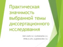 Практическая значимость выбранной темы диссертационного исследования ВЫП