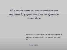 Исследование износостойкости поршней упрочненных искровым методом Выполнил студент