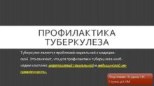 ПРОФИЛАКТИКА ТУБЕРКУЛЕЗА Туберкулез является проблемой социальной и медицин