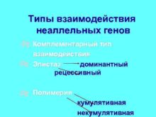 Типы взаимодействия неаллельных генов Комплементарный тип взаимодействия Эпистаз