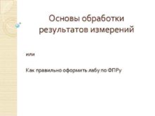 Основы обработки результатов измерений или Как правильно оформить