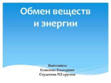 Обмен веществ и энергии Выполнила Елисеева Екатерина Студентка