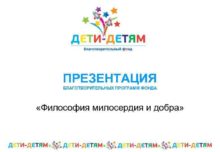 ПРЕЗЕНТАЦИЯ БЛАГОТВОРИТЕЛЬНЫХ ПРОГРАММ ФОНДА Философия милосердия и добра