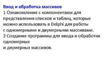Ввод и обработка массивов 1 Ознакомление с компонентами